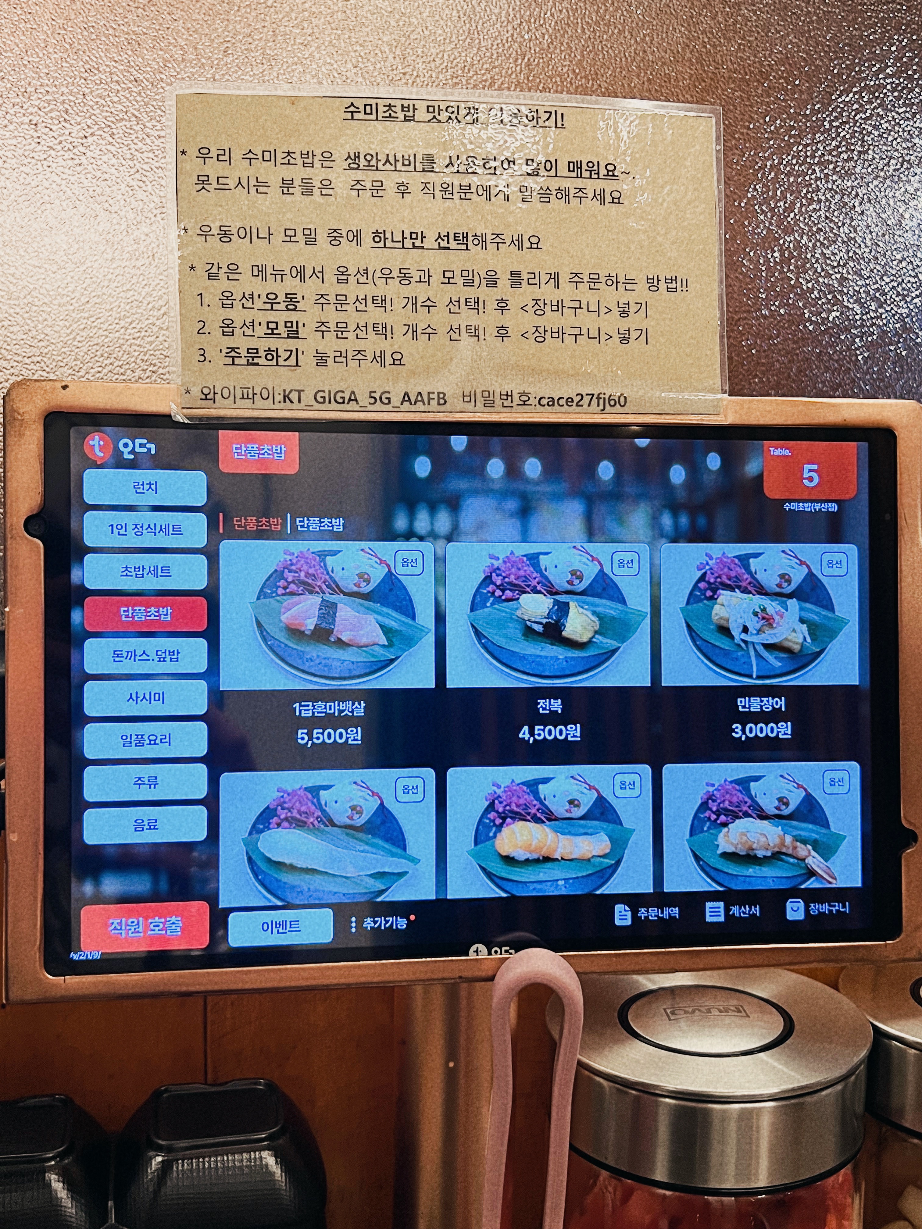 테이블에는 간장, 초생강,