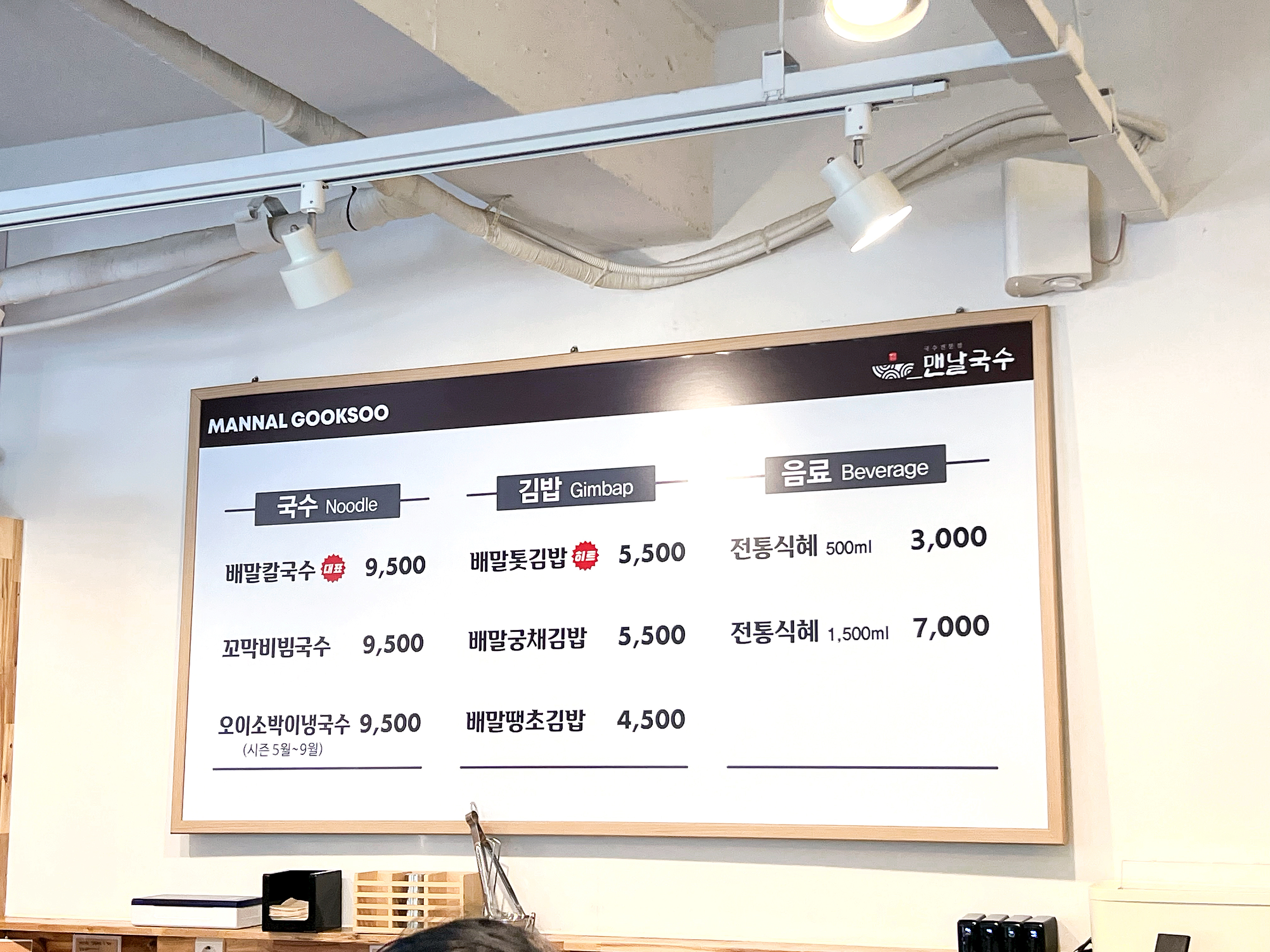 국수와 김밥 메뉴
